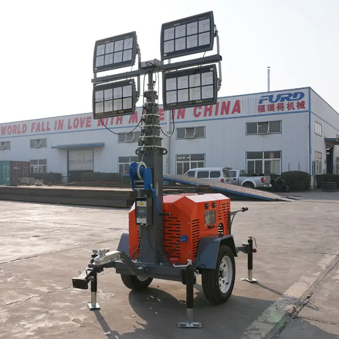 The lighting tower features a manual elevating type for easy operation.