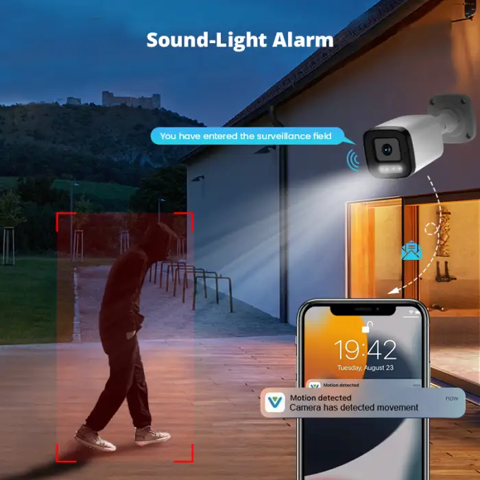 The system includes a built-in siren, human motion tracking, and face detection features to enhance security.