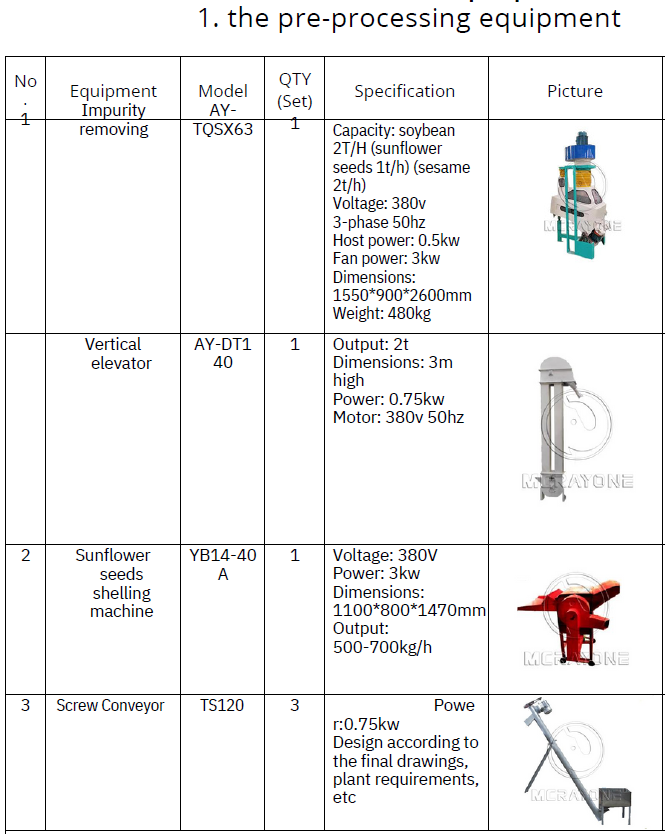 5. What type of sunflower seeds can be processed?