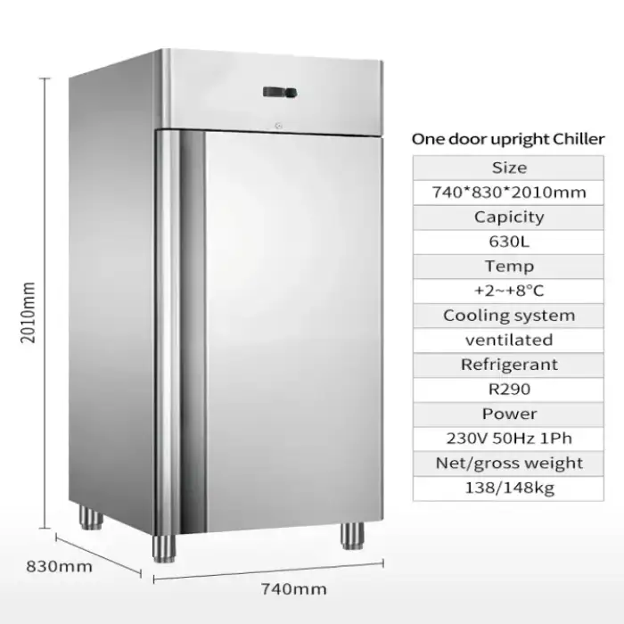 The 630L Commercial Refrigerator has a total capacity of 630 liters, providing ample space for storing a variety of perishable items.