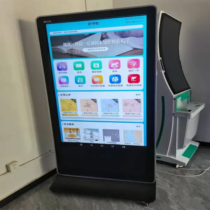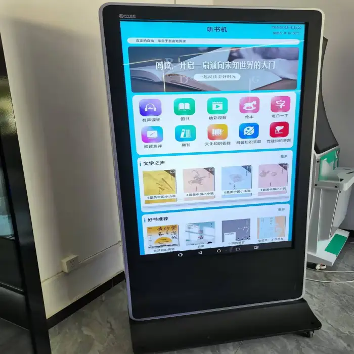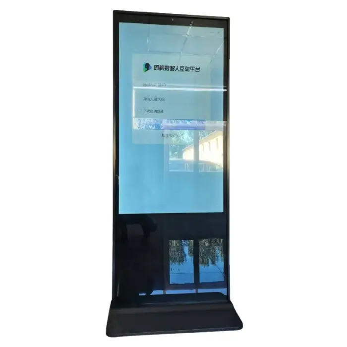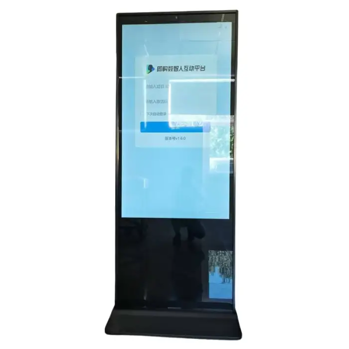 This is a floor-standing vertical display intended for indoor use. Allow sufficient clearance for ventilation and access to power/network ports, and ensure the floor can support the unit’s weight. Exact physical dimensions and weight should be requested from the seller to plan site layout and delivery.