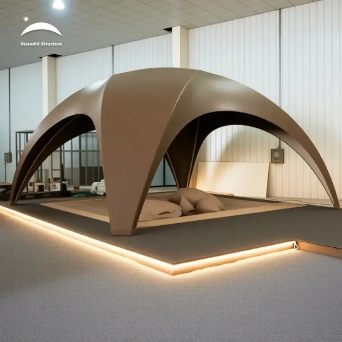 The tent is primarily designed for spring, summer, and autumn use. For winter events, additional measures may be needed for heating and insulation.