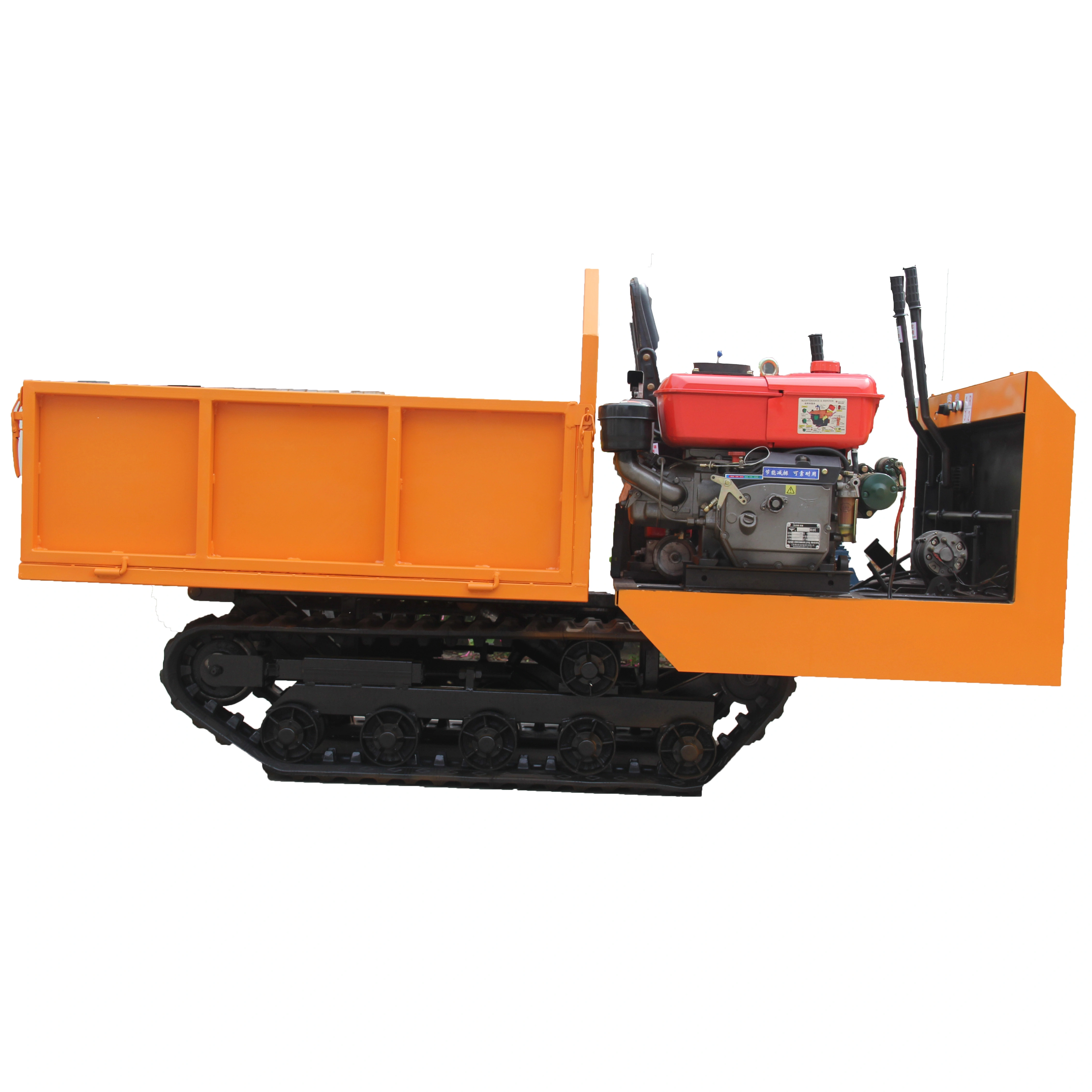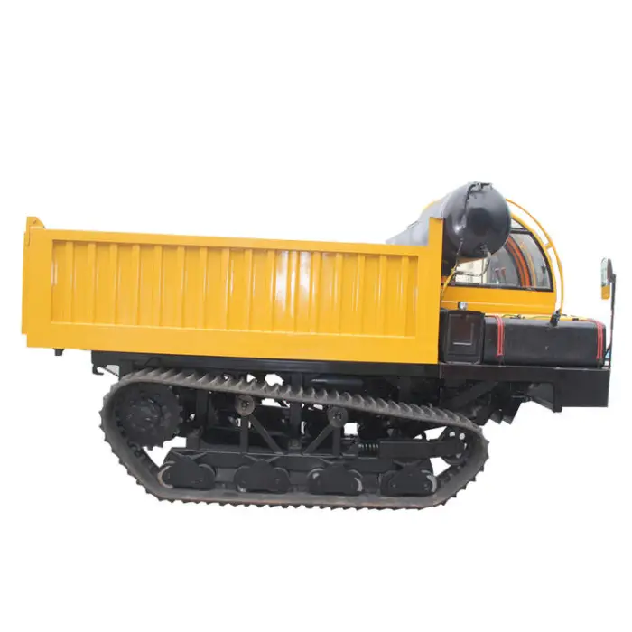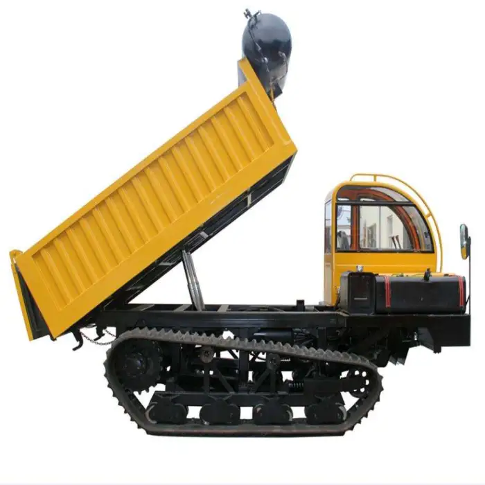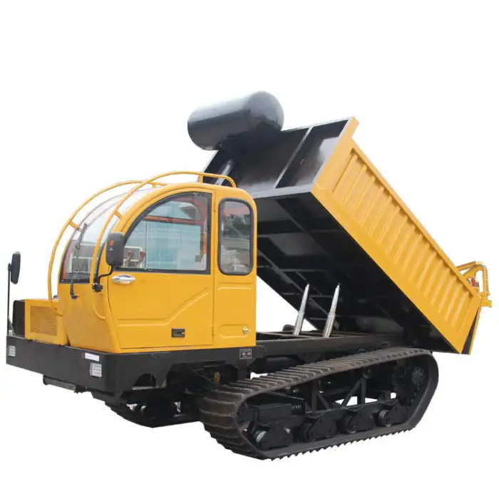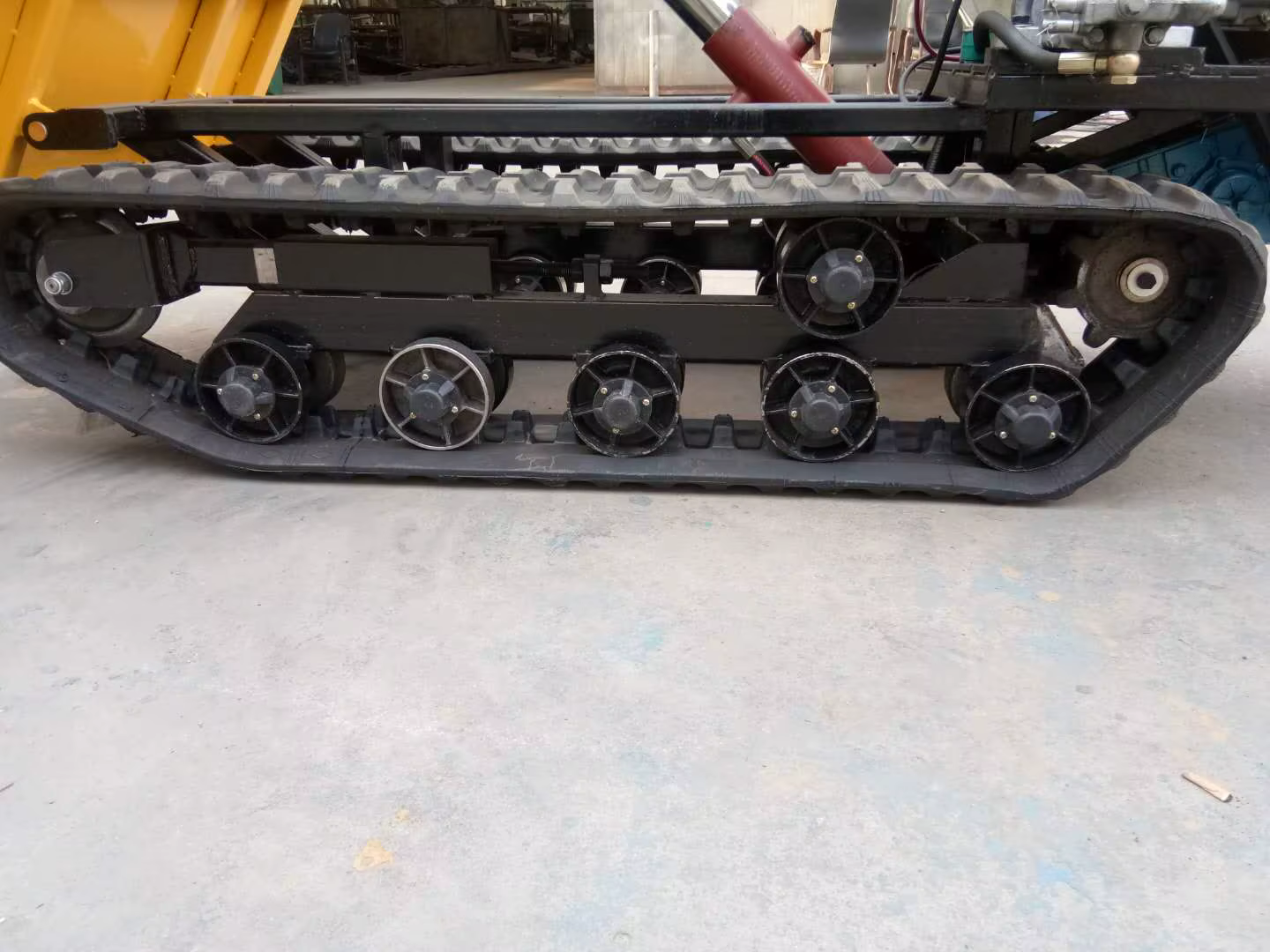 The crawler track enhances mobility, stability, and traction, allowing the dumper to operate effectively on various surfaces.