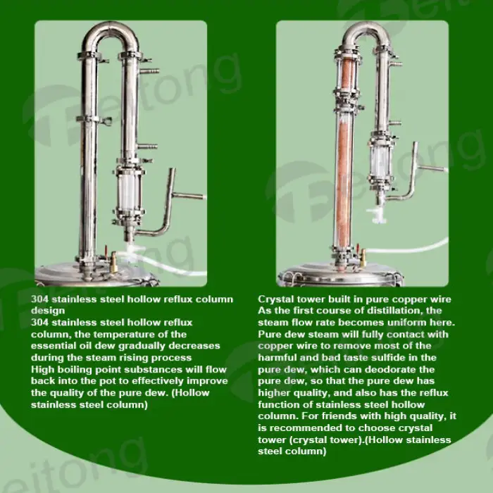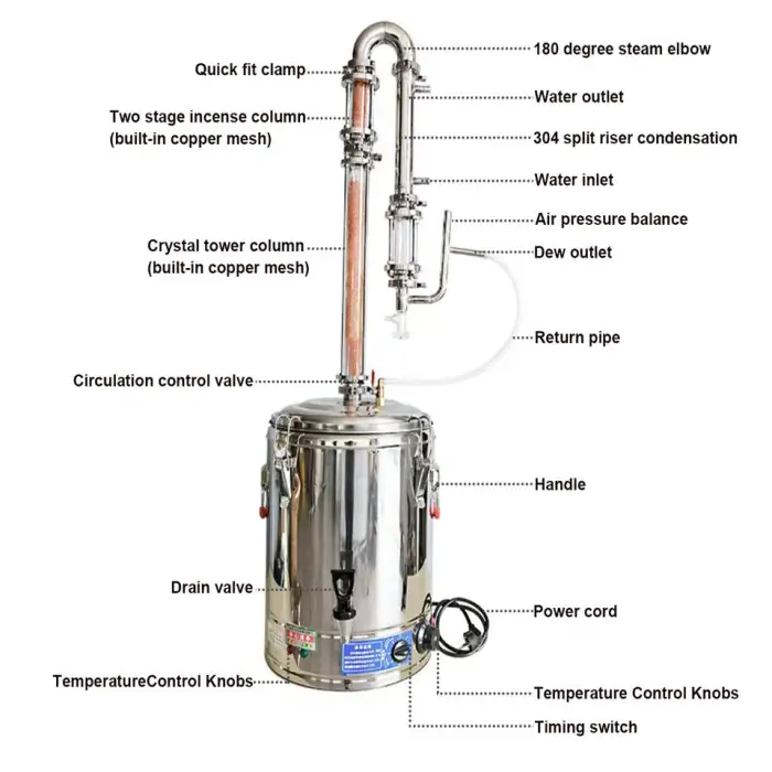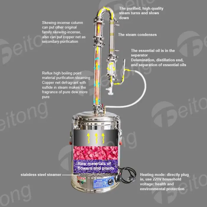 The essential oil distillation machine uses efficient electrical heating for quick and effective distillation.
