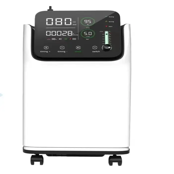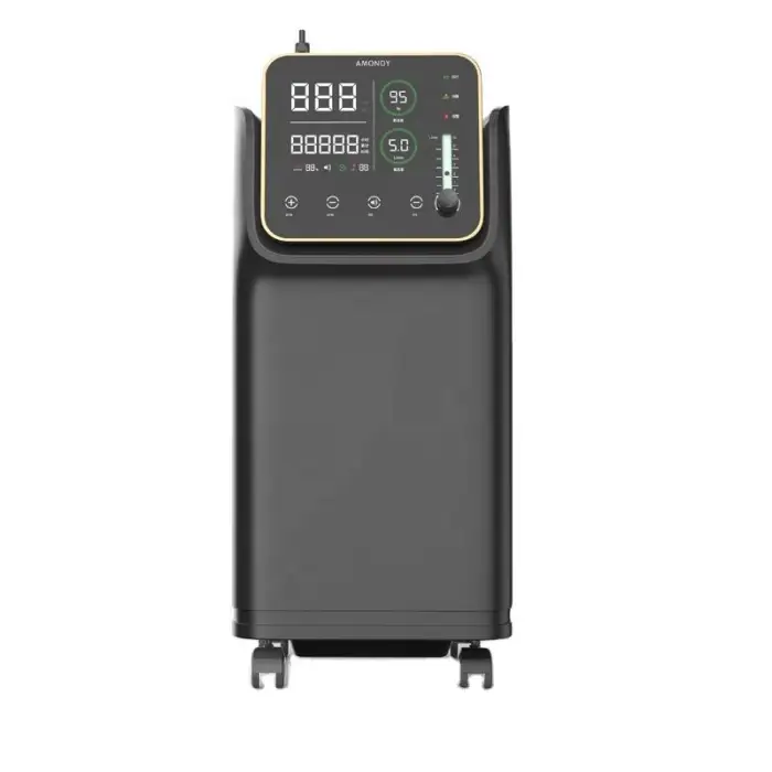 The oxygen concentrator is made from durable ABS material, ensuring long-lasting performance.