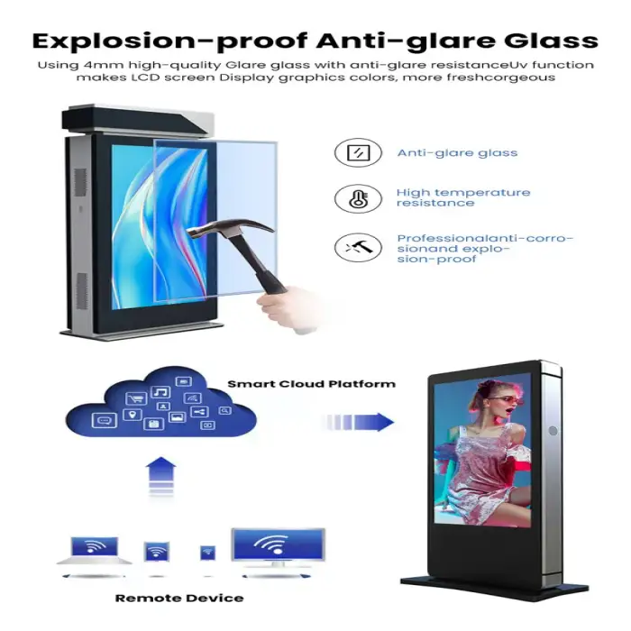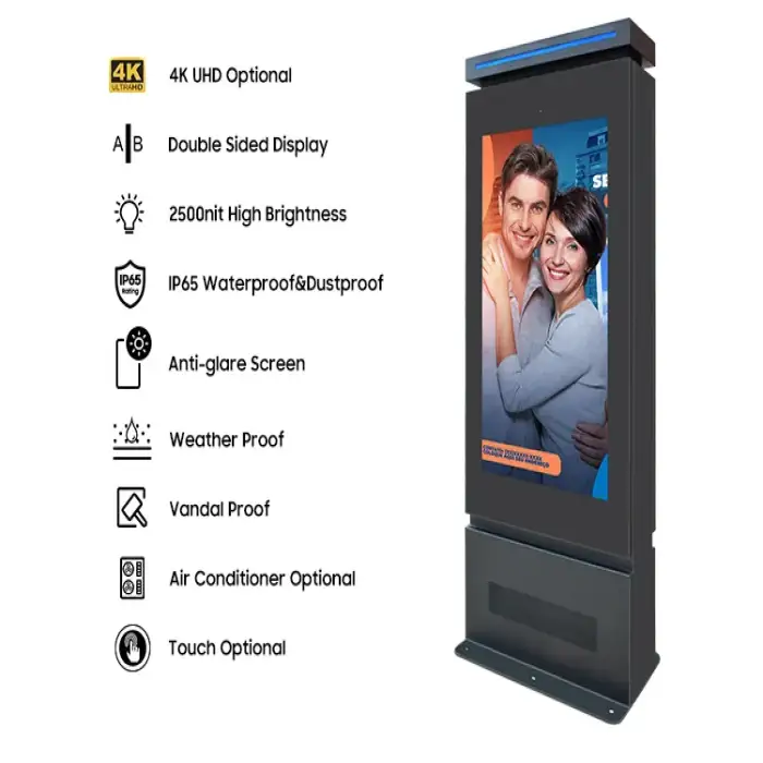 The outdoor advertising display is available in five sizes: 43, 49, 55, 65, and 75 inches.