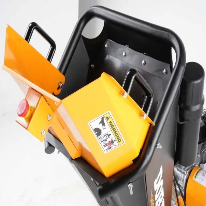 The chipper is rated for up to 4 inches (≈100 mm) diameter branches. The infeed throat opening is 154 × 137 mm, so irregular or oversized pieces should be reduced before feeding for best performance.