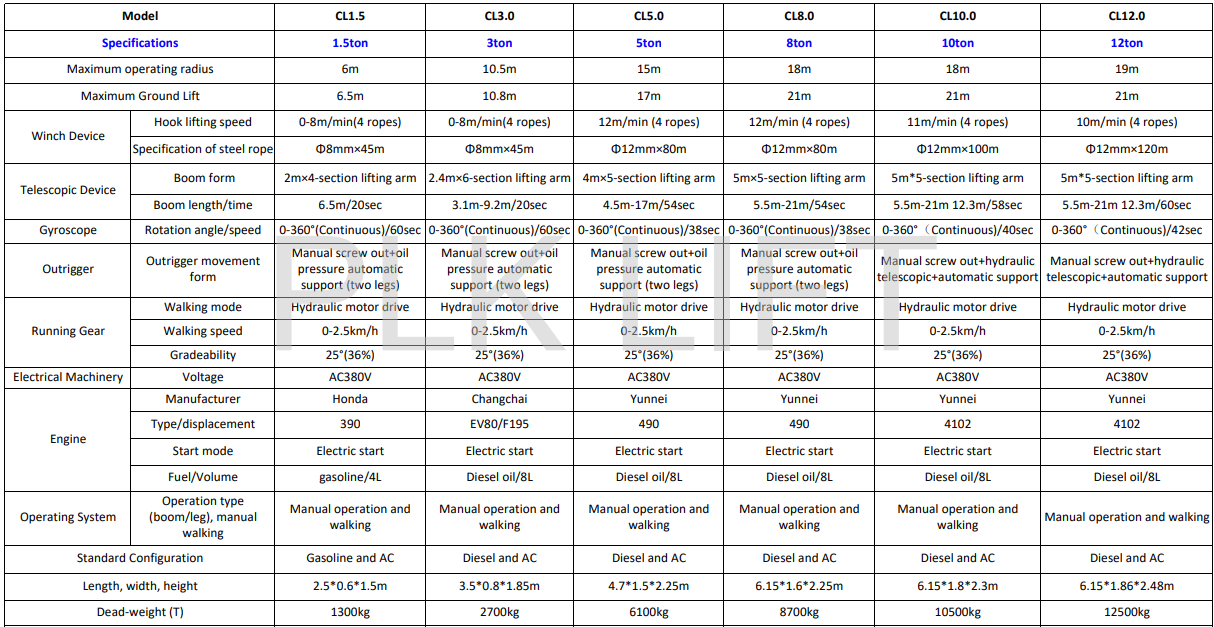 The CL8.0 Spider Crane includes an overload alarm and leg sensors to enhance safety during operation.