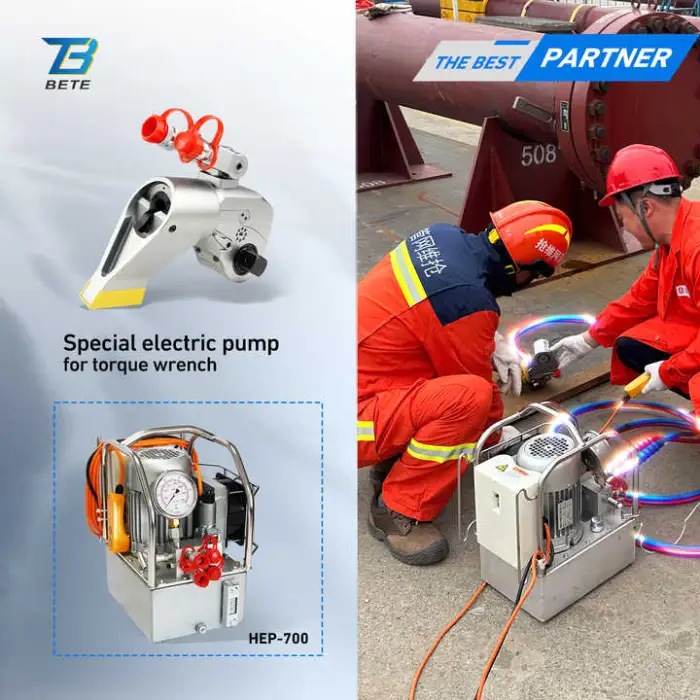 Common accessories and spare parts include a compatible high-pressure hydraulic pump, high-pressure hoses and couplers, reaction arms, drive sockets rated for hydraulic torque, and replacement seals. Check with the supplier for model-specific parts availability.
