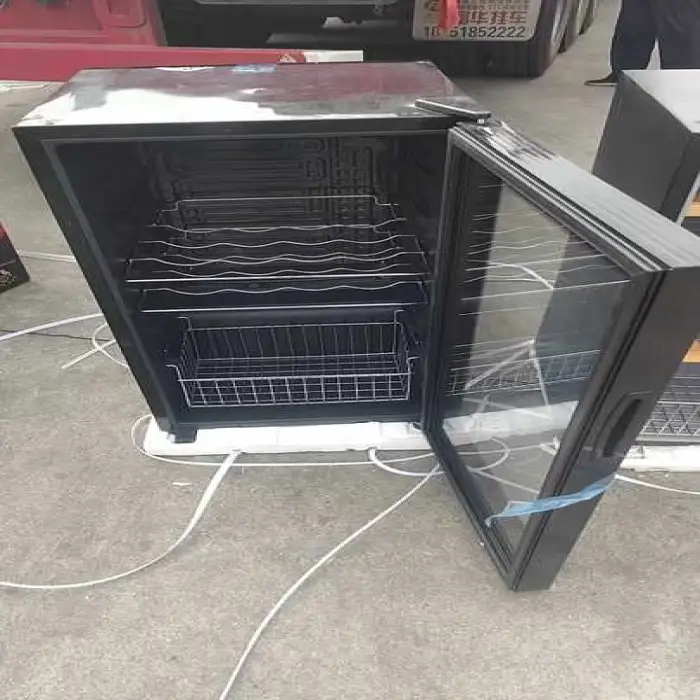 The 90L Small Table Mini Display Fridge features a manual defrost type.