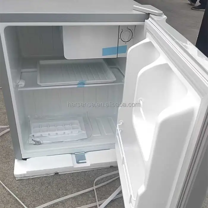 The fridge has a capacity of 90 liters, allowing you to store a variety of drinks and snacks.