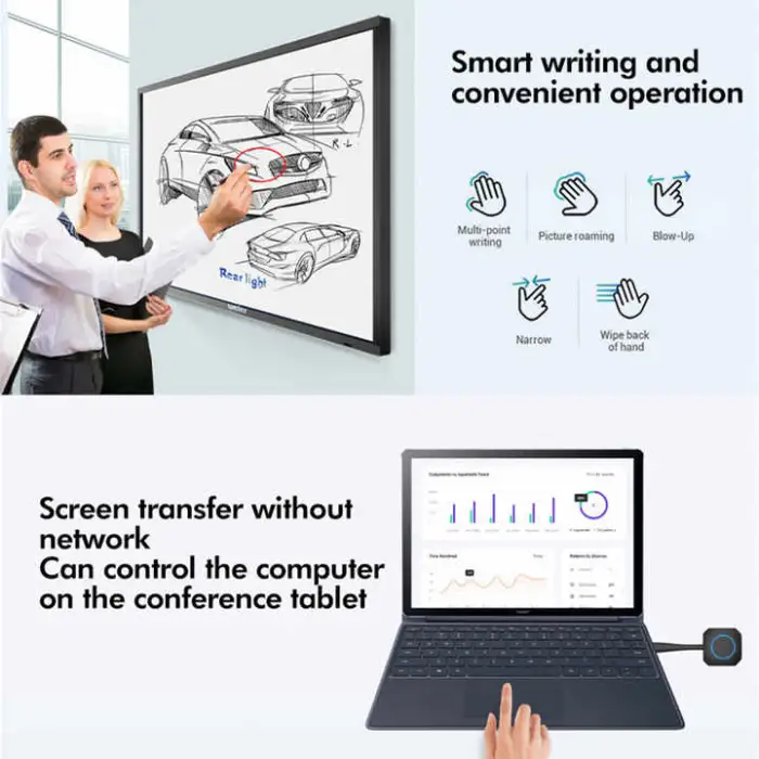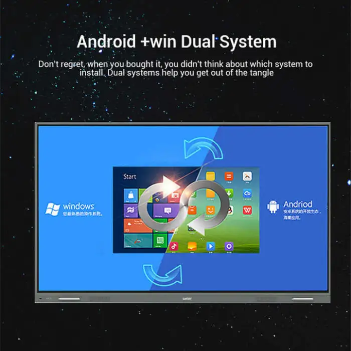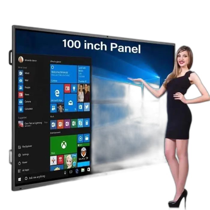 This interactive flat panel is available in multiple sizes including 55, 65, 75, 85, 86, 95, 98, and 110 inches.