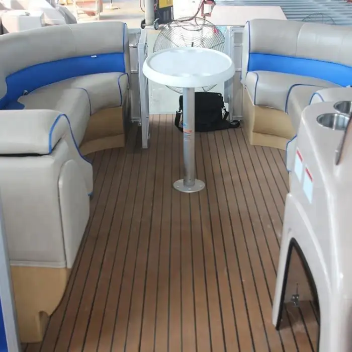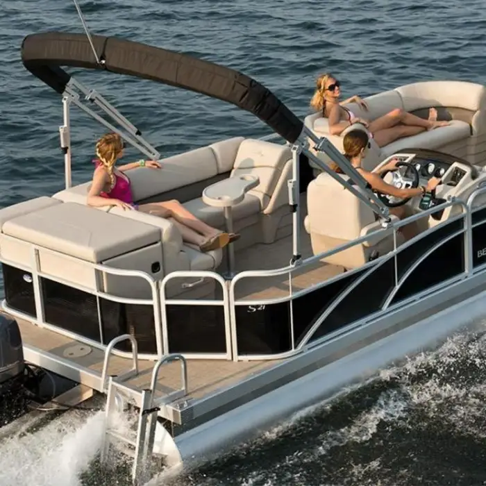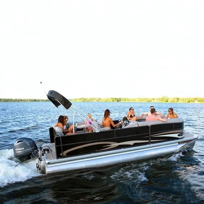 The houseboat is constructed from durable aluminum alloy, ensuring longevity and performance.