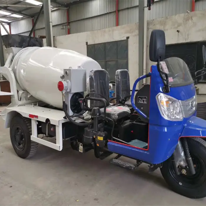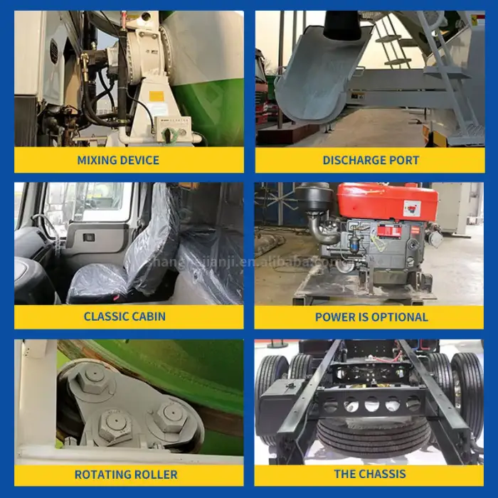 The concrete mixer truck is equipped with a 4-cylinder engine.
