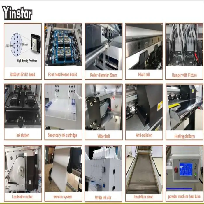 Key features include an automatic printing process for efficiency, high-quality pigment ink, and large format printing capabilities.