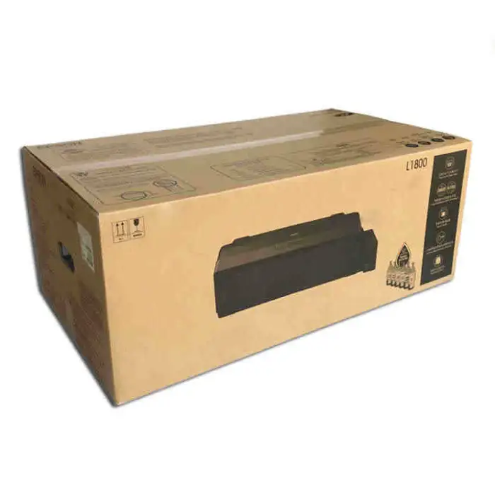 The printer is packaged in an export wooden box for safe transport.