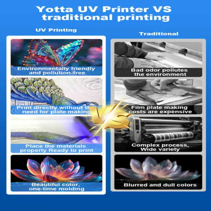 UV-cured inks dry instantly under UV lamps, producing durable prints that are resistant to smudging. Durability (scratch, UV and wash resistance) depends on ink formulation and substrate; for outdoor or heavy-wear applications, test samples and consult ink supplier for finishing recommendations.
