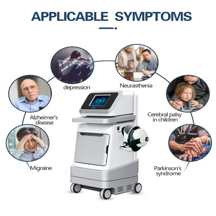 The ABS Transcranial Magnetic Stimulation (TMS) Therapy Device is a medical machine designed to provide pain relief using advanced transcranial magnetic stimulation technology, particularly effective for conditions like cerebral palsy.