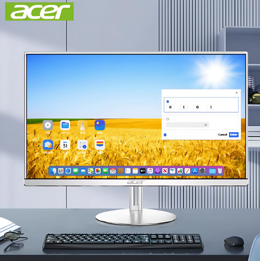 The Acer All-in-One Computer is equipped with either a 12th-generation Core i5 or i7 processor, providing options for different performance needs.