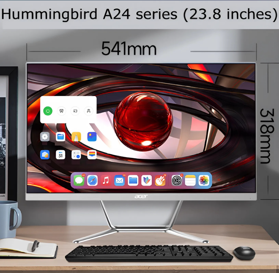 The all-in-one design combines the desktop and display into a compact unit, enhancing aesthetic appeal while saving space.