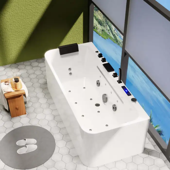 The bathtub is made from high-quality acrylic, which is durable, resistant to scratches and stains, and has a smooth, glossy surface that is easy to maintain.