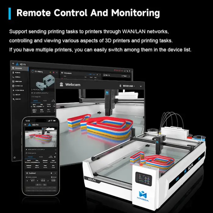 The AD-F4 printer can achieve print speeds of up to 350mm/s, making it suitable for quick production.