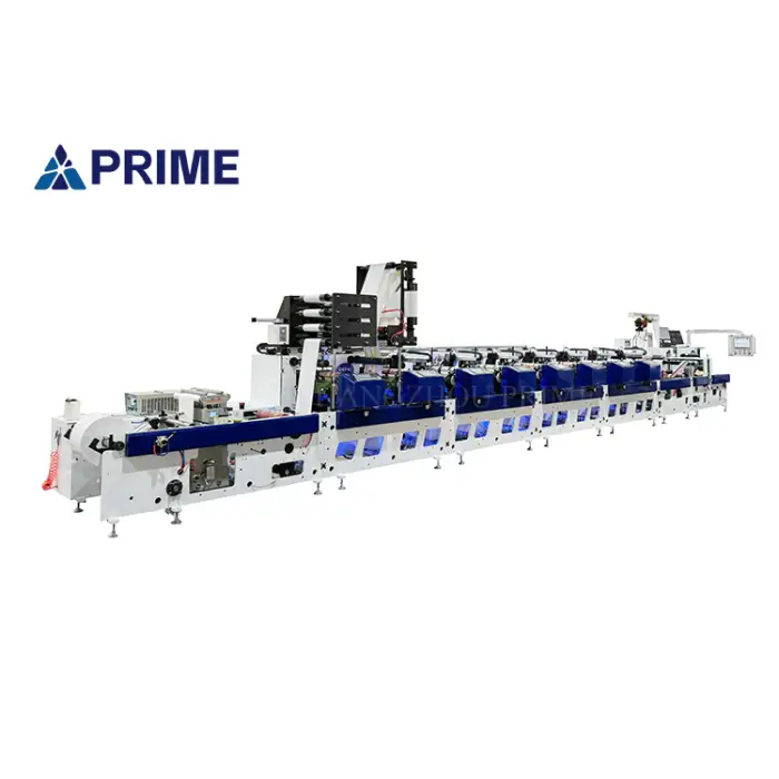 This machine can print on a variety of materials including label, non-woven fabric, paper, film, OPP, PE, BOPP, NY, PET, and CPP.