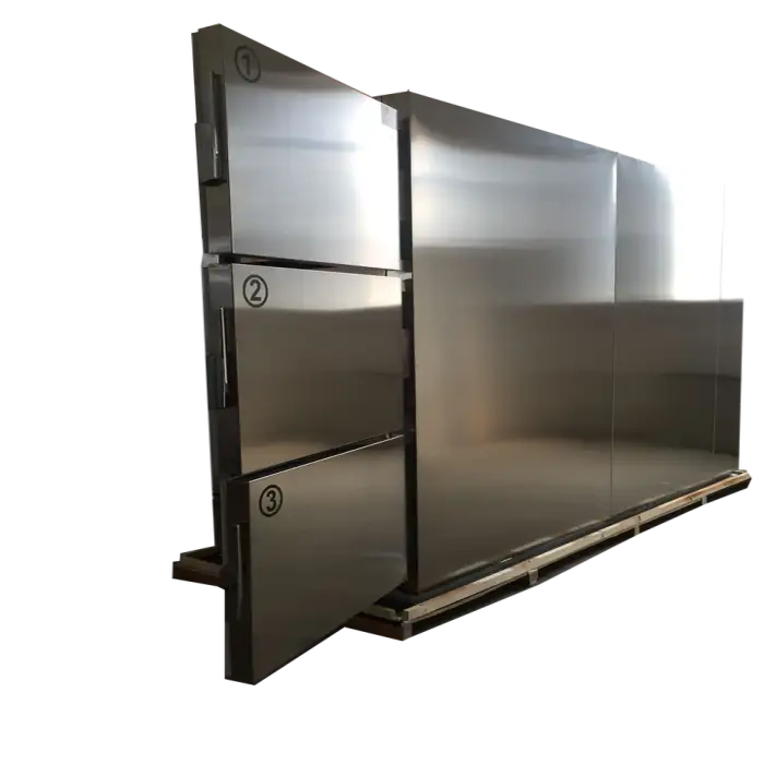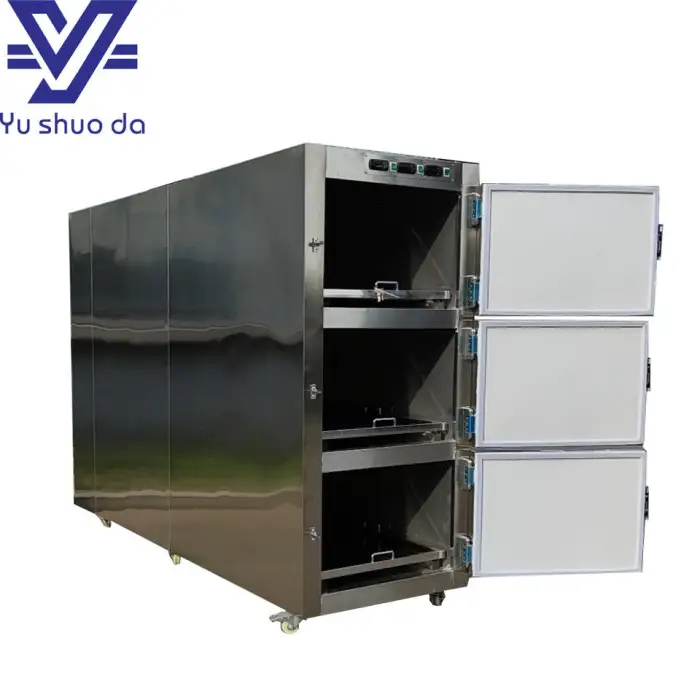 The Adjustable 3 Room Mobile Mortuary Refrigerator is designed for the safe and efficient storage of human remains at controlled temperatures.