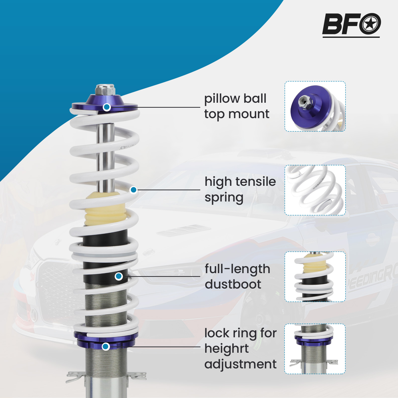 Adjustable Coilovers for VW Golf, Beetle, and Seat Leon FWD