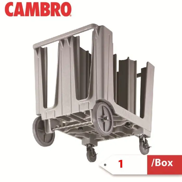 The Adjustable Disc Storage Truck is available in a grey color, making it a neutral fit for various commercial environments.