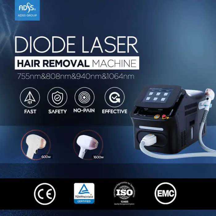 The Adss Hair Removal Laser machine is CE and ISO certified, ensuring quality and safety standards.