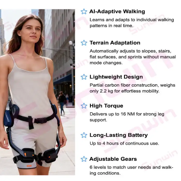 The Advanced Electric Hip Assist Robot is constructed from lightweight, durable materials that ensure comfort and longevity for outdoor use.