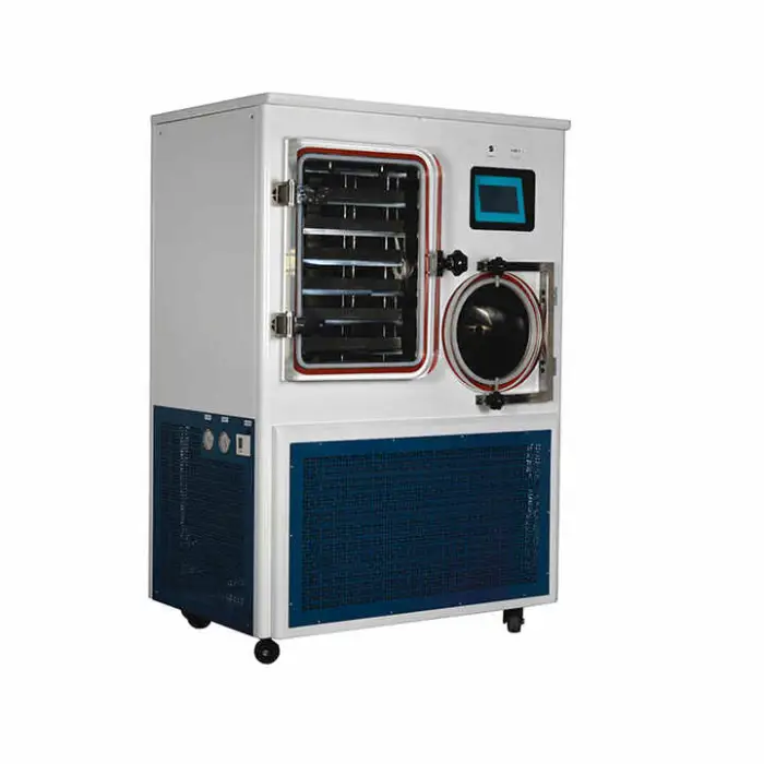 This freeze dryer can process vaccines, antibiotics, chemicals, and food products, making it suitable for both pharmaceutical and food industries.