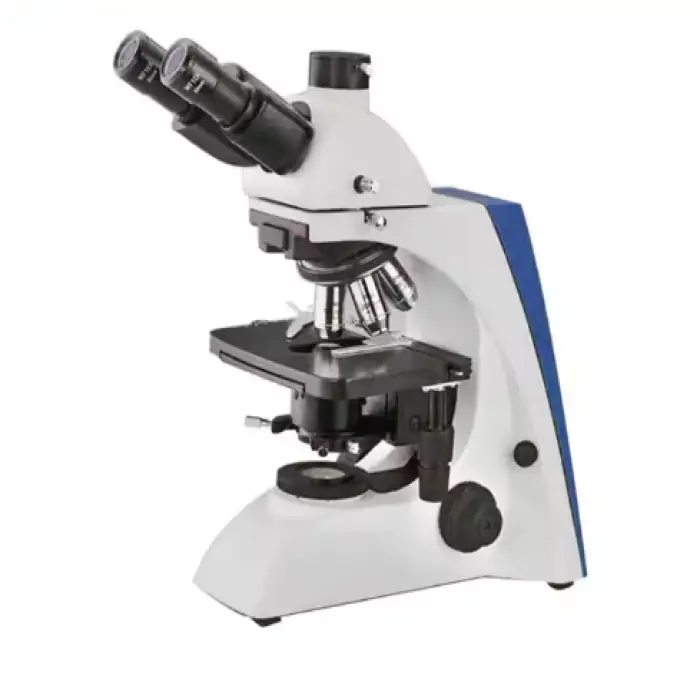 The AELAB Portable Fluorescence Biological Microscope features a trinocular design for easy photography, both LED and halogen lighting options, multiple objective lenses for various magnifications, and a portable design for easy transport.