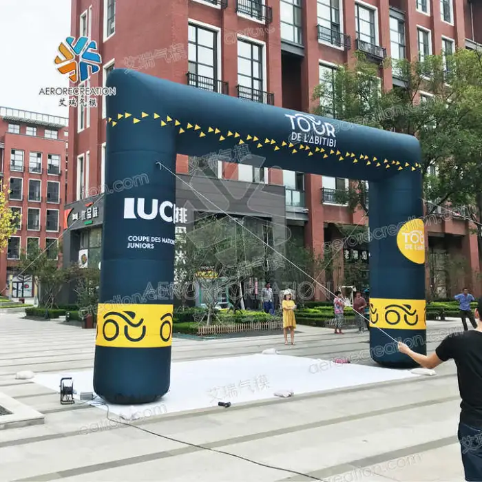 It is a vibrant, attention-grabbing inflatable arch designed for event advertising and finish lines. Made from durable Oxford cloth with high-quality digital printing, it is customizable with your logo and messaging for races, festivals, sporting events and promotional gatherings.