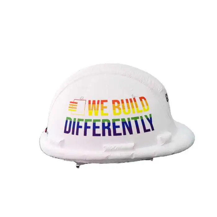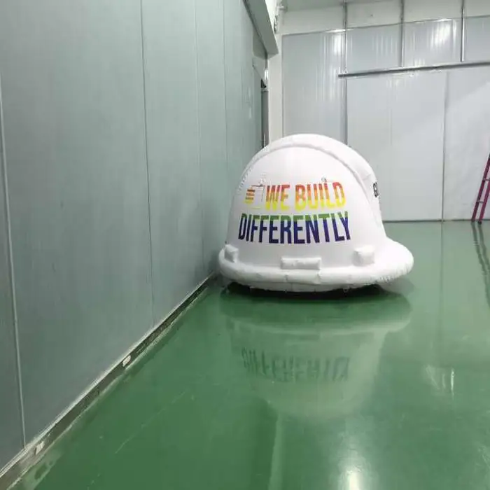 It is a large, eye-catching inflatable replica of a motorcycle helmet designed for advertising and brand promotion at indoor events, trade shows, outdoor festivals and retail displays.