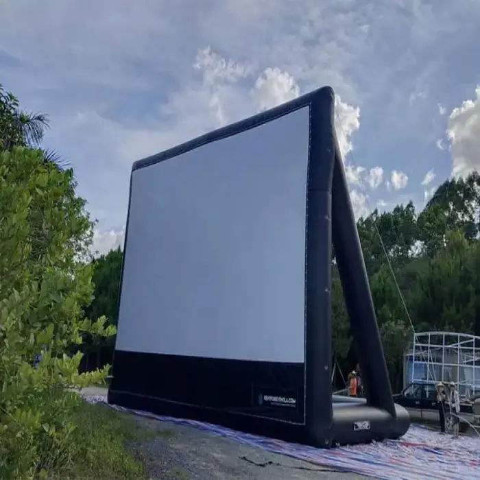 The Aero Inflatable Outdoor Cinema Screen is a durable, portable inflatable screen made from Oxford cloth designed for outdoor movie nights, promotions, community events and other gatherings. It features vibrant digital printing and can be customized with your logo.