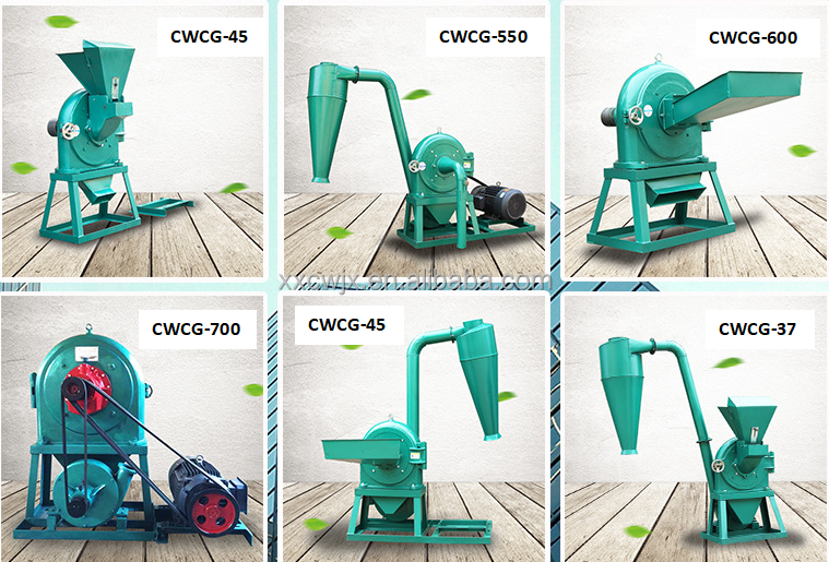 The CWCG-37 can mill a variety of materials including corn, soybean, sorghum, oil cake, rice, and various animal feeds, as well as herbs, spices, and some chemical products.