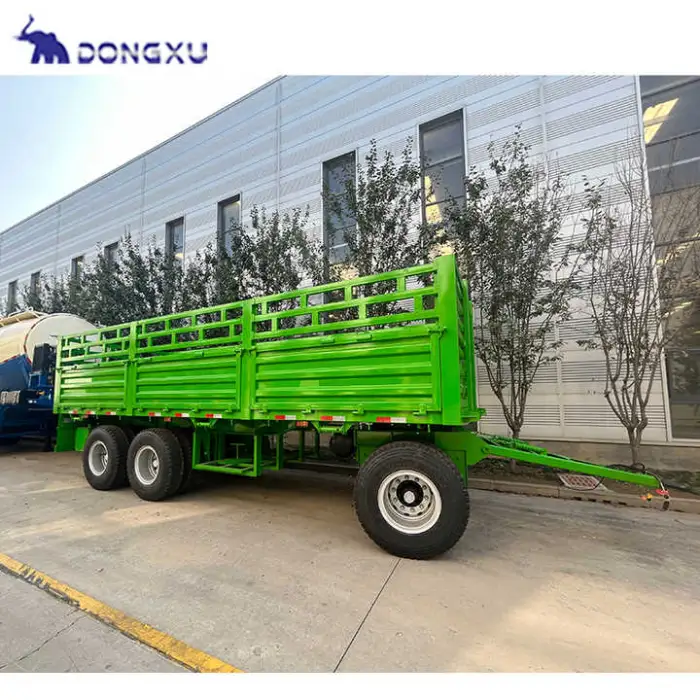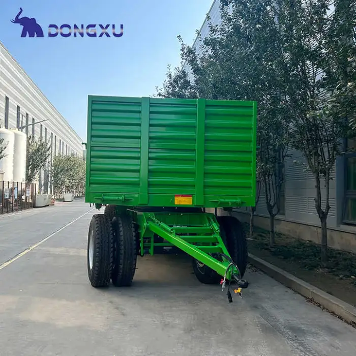 The trailer is described as easy to attach and detach from tractors, but the exact hitch type (drawbar, ring, clevis, three‑point, etc.) is not specified. Confirm hitch type and compatibility with your tractor when ordering.