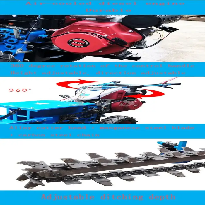 The Mini Handheld Chain Trencher is powered by a 12HP diesel engine, providing strong performance for efficient trenching.