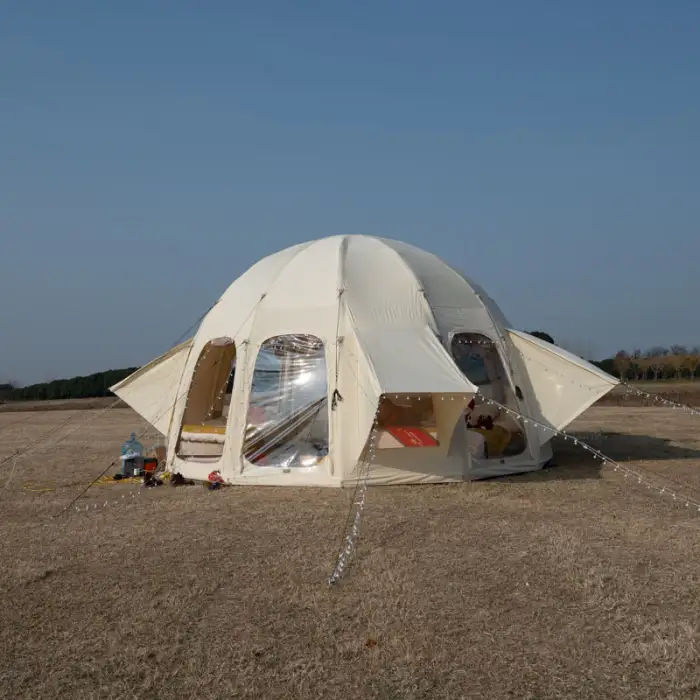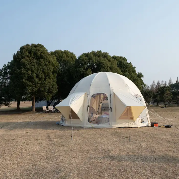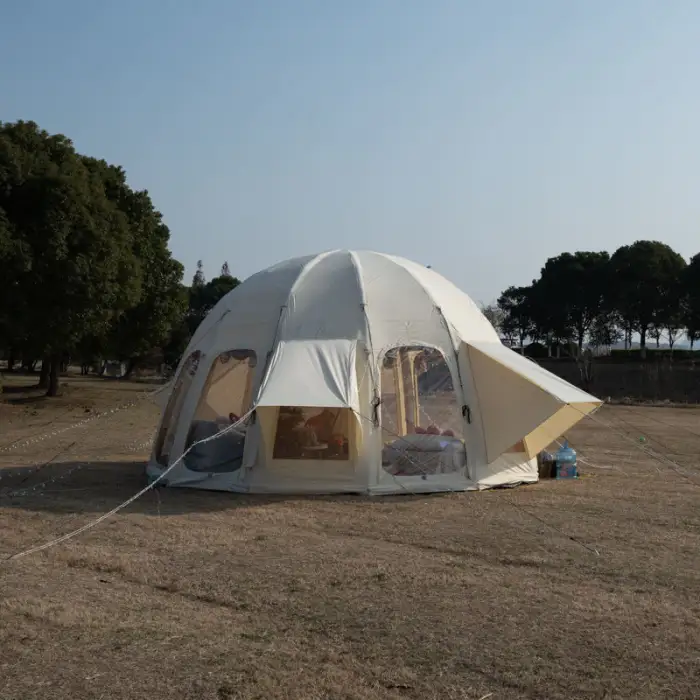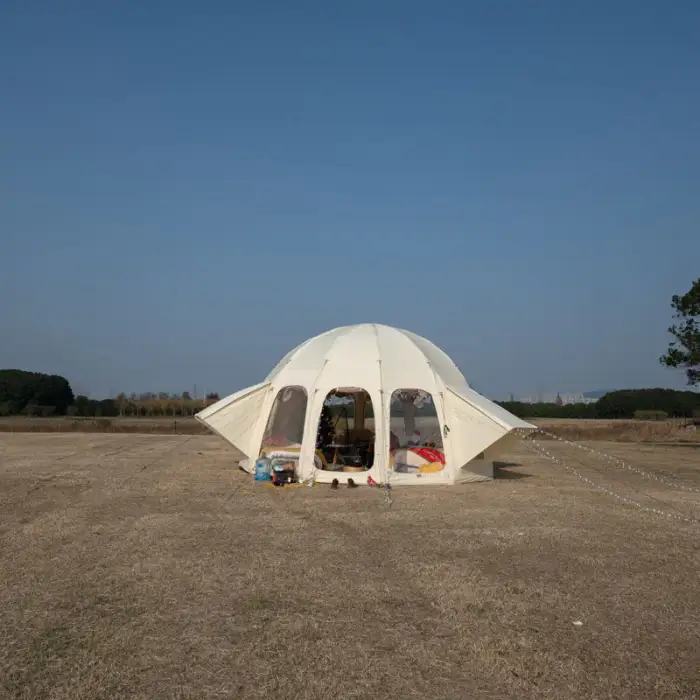 This tent is perfect for camping trips, glamping experiences, outdoor festivals, emergency shelters, and backyard gatherings.