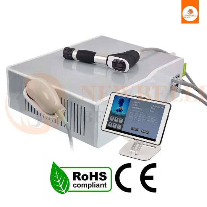 The machine uses advanced pneumatic shock wave technology to deliver energy pulses to targeted areas of the body, which helps alleviate pain and stimulate healing processes.