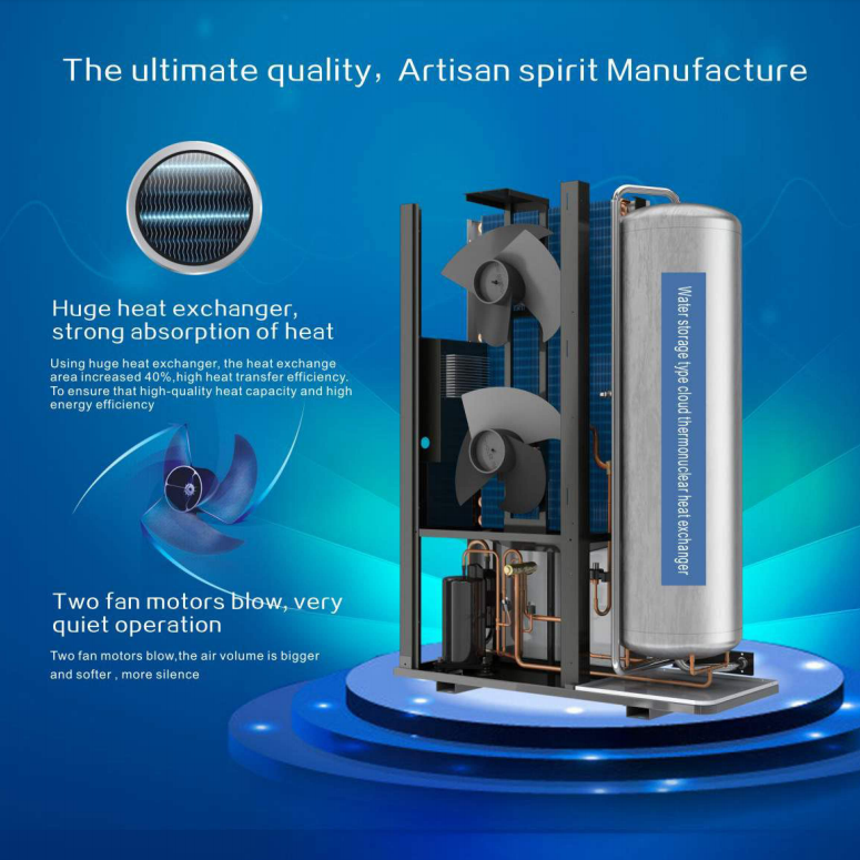 This heat pump can heat water to a maximum temperature of 55-60°C, providing warm water for household or commercial use.