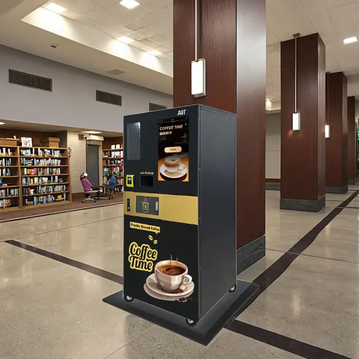 The AIT 8 Selection Vending Machine offers a variety of coffee choices, accommodating different preferences with its 8 selection options.