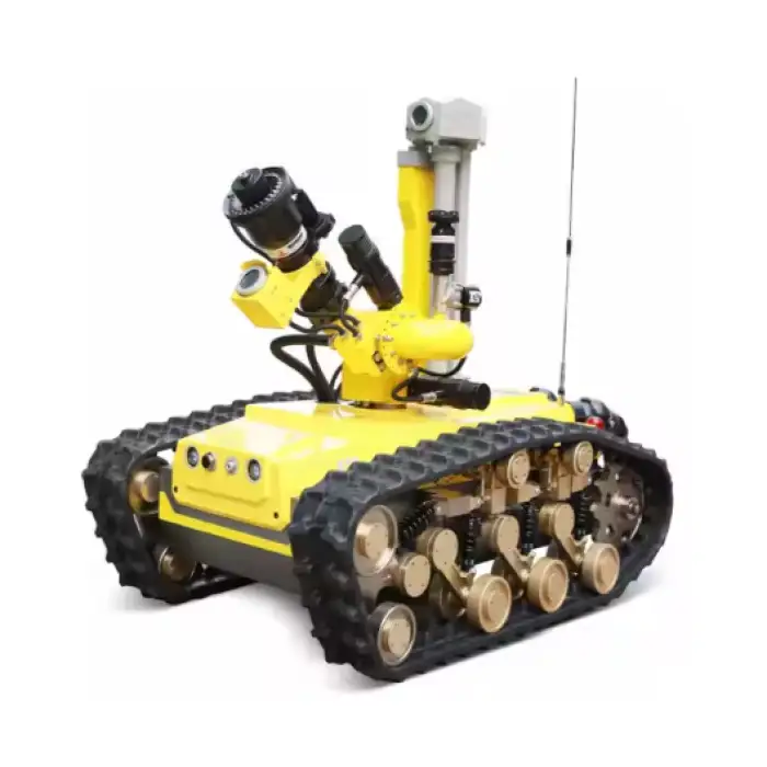 The robot is equipped with automatic fire extinguishing systems that activate when a fire is detected, ensuring quick response to emergencies.