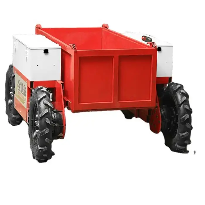 The vehicle is controlled via a remote control system that allows you to maneuver it from a distance, providing convenience during operation.