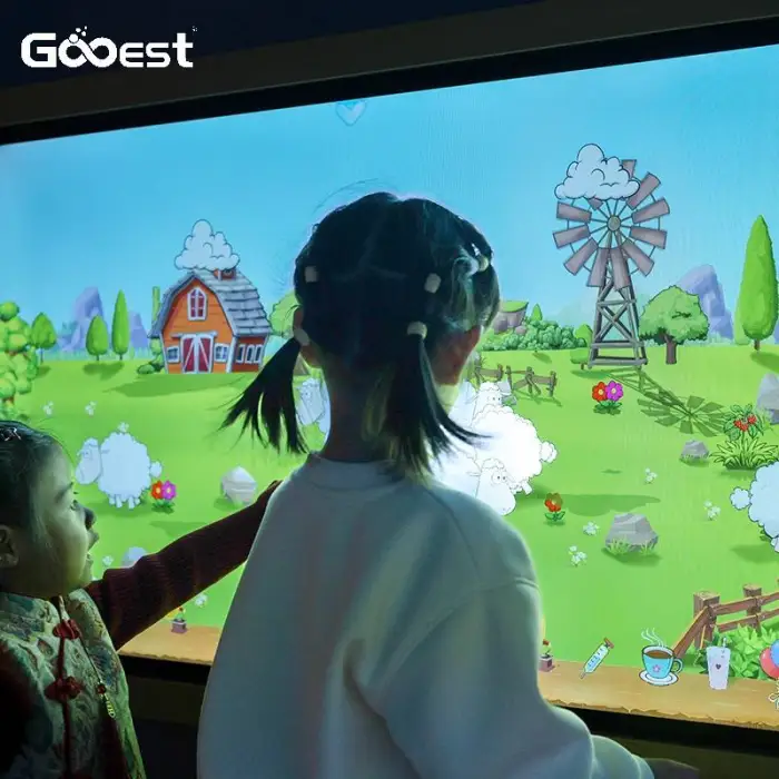 The playground features over 6 interactive touch TV games that promote physical activity and creativity.