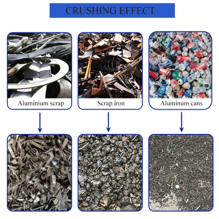 The machine can efficiently crush various types of metals, including aluminum, stainless steel, and brass.