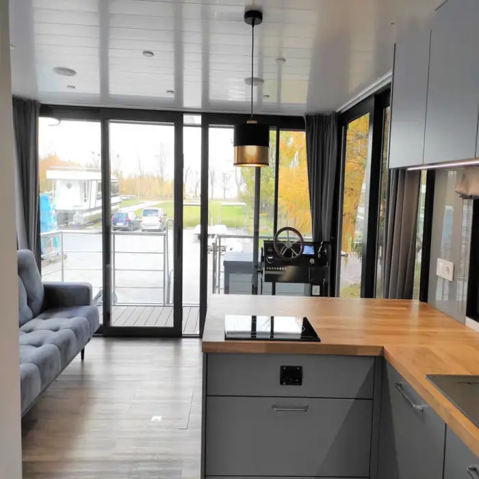 The Aluminum Pontoon House Boat weighs 5000 kg.