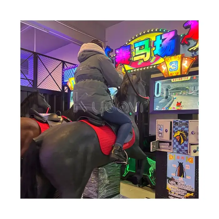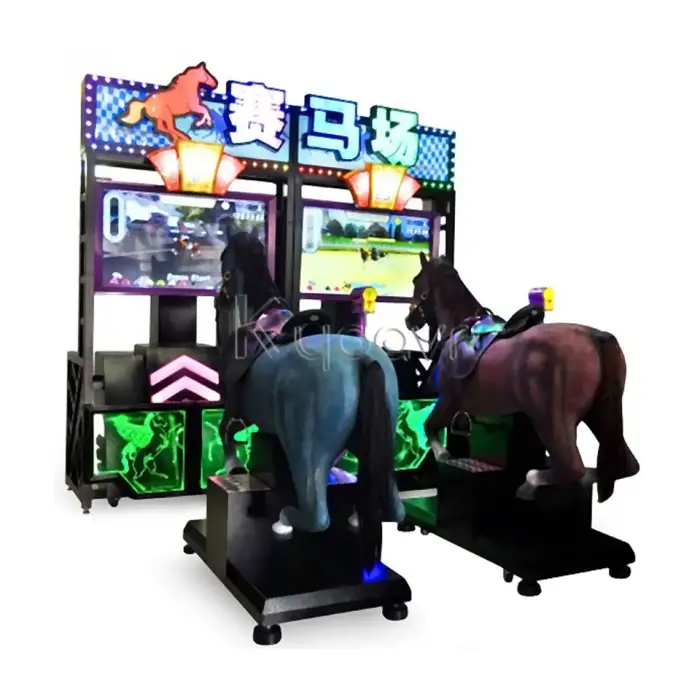 Players insert coins to start the game, select their horses, and compete in races against each other.